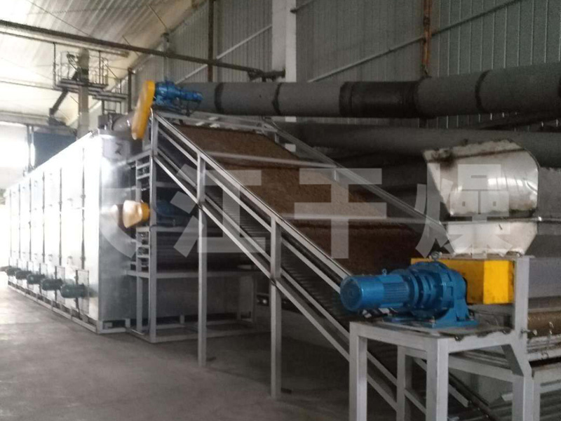 干燥机工作时,冷空气通过热交换器进行加热,采用科学合理循环方式,使热空气穿流通过床面上的被干燥物料进行均匀的热质交换,机体各单元内热气流在循环风机的作用下进行热风循环,后排出低温高湿度的空气,平稳地完成整个干燥过程。