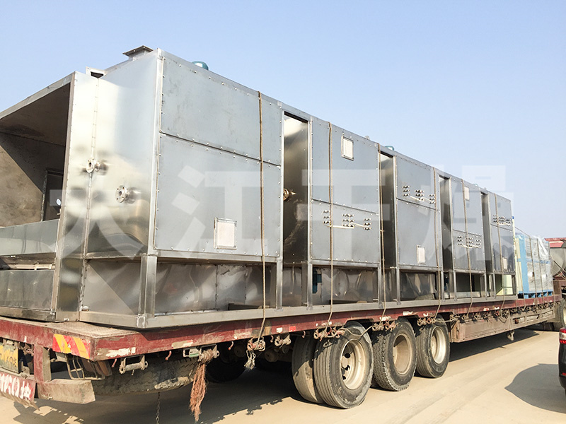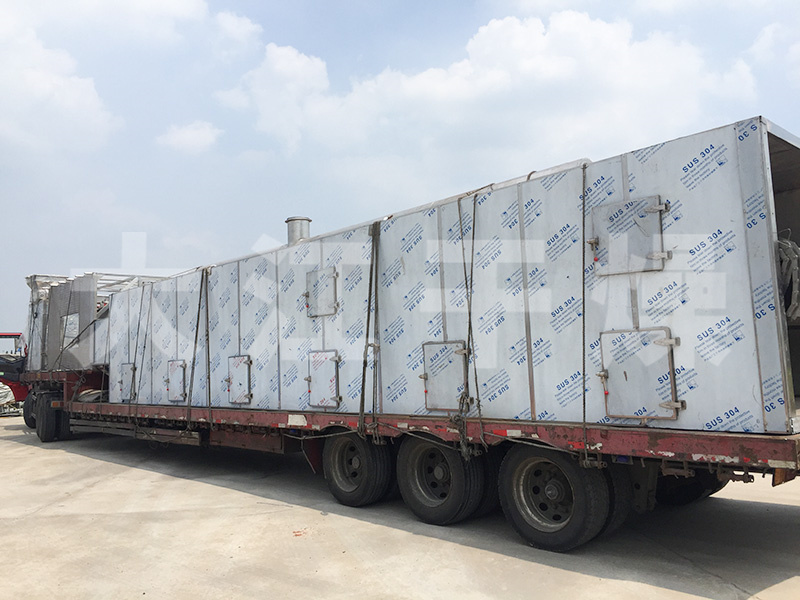 物料由加料器均匀地铺在网带上,网带一般采用12-60目不锈钢丝网,由传动装置拖动在干燥机内移动。干燥机由若干单元组成,每一单元热风独立循环,部分尾气由*门排湿风机排出,废气由调节阀控制,热气由下往上或由上往下穿过铺满物料的网带完成热量与质量传递的进程,带走物料水份。网带缓慢移动,运行速度可根据物料温度自由调节,干燥后的成品连续落入收料器中。上下循环单元根据用户需要可灵活配备,单元数量亦可根据需要选取。