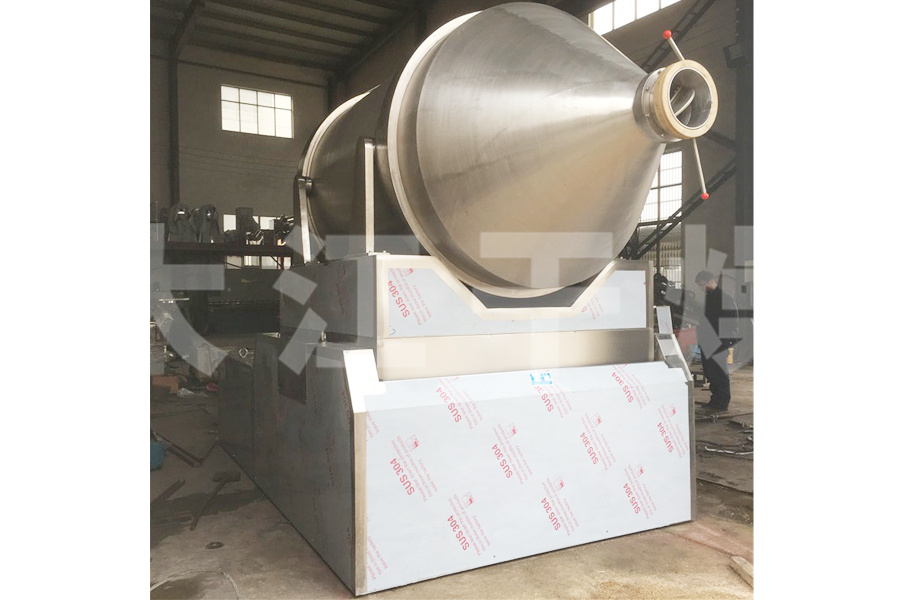 EYH系列二维运动混合机的转筒可同时进行二个运动,一个为转筒的转动,另一个为转筒随摆动架的摆动。被混合物料在转筒内随转筒转动、翻转、混合的同时,又随转筒的摆动而发生左右来回的掺混运动,在这两个运动的共同作用下,物料在短时间内得到充分的混合。EYH二维混料机适合所有粉、粒状物料的混合。