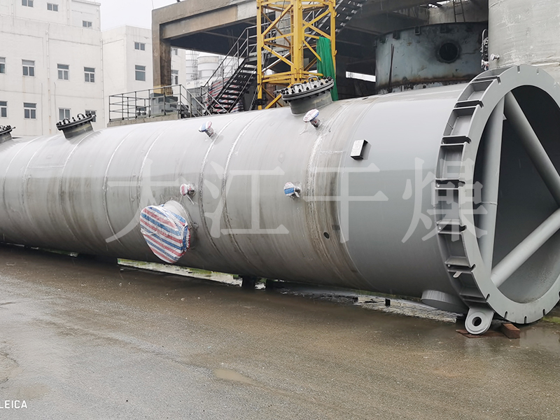 3. 经过除尘净化的废气经离心风机压缩后,水和气体在填料塔内冷凝。通过采用冷凝液和补充水组成的洗涤液循环洗涤,除去废气中夹带的水份和气体。一部份气体与二氧化碳或氮气进行反应。
